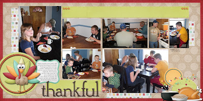 I don't normally do Thanksgiving layouts (because I'm usually too busy to remember to take photos). I did remember to take some pics this time. I needed an excuse to get this adorable kit!